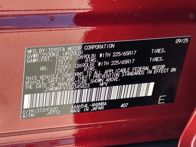 - VIN : JTMRWRFV1SD345823