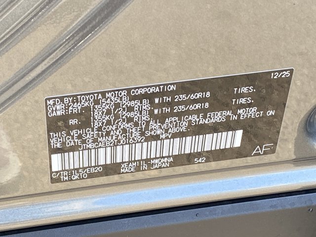 - VIN : JTMBCAEB2TJ016392