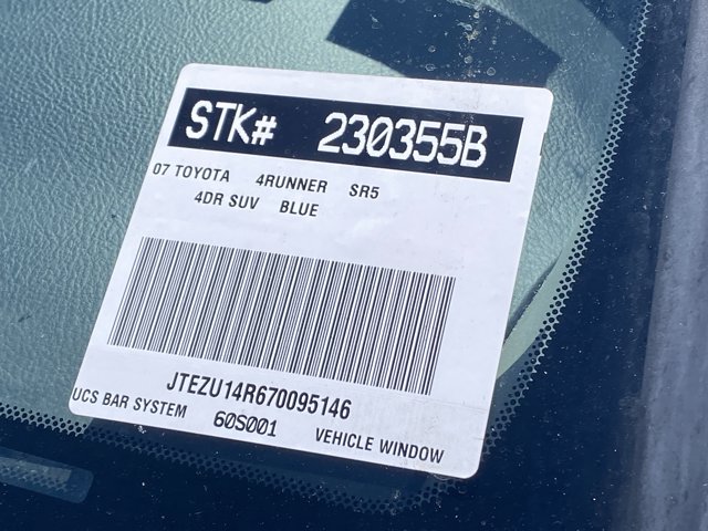 AS IS CAR. Runs great. Good tires and brakes. Engine and transmission run smooth. FREE CARFAX! We have great interest rate and financing for ALL credit situations.. Nautical Blue Metallic 2007 Toyota 4Runner SR5 RWD 5-Speed Automatic with Overdrive 4.0L V6 SMPI DOHC ABS brakes, Alloy wheels, Electronic Stability Control, Illuminated entry, Low tire pressure warning, Remote keyless entry, Traction control.Recent Arrival!WHY BUY at the BEACH? Our customers are our most valuable asset. If you are already a customer, welcome back. If you are new to Toyota of Huntington Beach, we would like to convince you to join the ranks of satisfied Toyota of Huntington Beach customers. Financing for all situations. Great rates available. GREAT rates for good credit. Financing for ALL credit situations. BK ok. Low score OK. (See dealer for details.) Se Hablamos Espanol. Marticular OK.