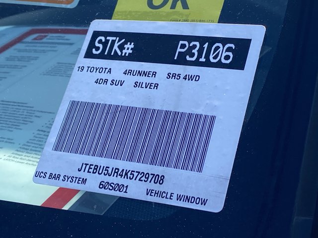 PREMIUM METHOD WHEELS WITH OVERSIZE OFF ROAD TIRES. Entune Premium Audio w/Integrated Navigation and EntuneTM App Suite - Incl 6.1in High Resolution Touch-Screen with Split Screen Display, AM/FM CD Player, 8 Speakers,Auxilliary Port,USB 2.0 Port Advanced Voice Recognition, Hands-Free Phone Capability. Looks and runs great. Good tires and brakes. Engine and transmission run smooth. Damage free. Immaculate inside and out. FREE CARFAX! We have great interest rate and financing for ALL credit situations.. Classic Silver Metallic 2019 Toyota 4Runner SR5 4WD 5-Speed Automatic with Overdrive 4.0L V6 SMPI DOHC 4WD, Graphite Cloth.Recent Arrival!Toyota Silver Certified Details:* SILVER CERTIFIED Eligibility: Vehicles up to 10 Model Years Old & Between 60,000-125,000 Miles on Odometer; Outside Gold Eligibility Parameters, Limited Powertrain Warranty: 12-Month/12,000-Mile(2), 24-Hour Roadside Assistance: 12-Month/12,000-Mile(3), Extended Warranty Coverage (items 2 and 3 above) Transferable at No Cost For Added Resale Value, Quality Assurance Inspection: 136-Point Minimum, Free CARFAX Vehicle History Report, Warranty Honored at Over 1,400 Toyota Dealers in the Continental U.S. and Canada, Trade-Ins Accepted, Trouble-free Handling of Your Transaction; Including DMV PaperworkAwards:* 2019 KBB.com Best Resale Value Awards * 2019 KBB.com Brand Image AwardsWHY BUY at the BEACH? Our customers are our most valuable asset. If you are already a customer, welcome back. If you are new to Toyota of Huntington Beach, we would like to convince you to join the ranks of satisfied Toyota of Huntington Beach customers. Financing for all situations. Great rates available. GREAT rates for good credit. Financing for ALL credit situations. BK ok. Low score OK. (See dealer for details.) Se Hablamos Espanol. Marticular OK.