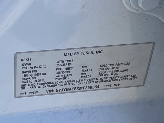 - VIN : 5YJYGAEEXMF258364