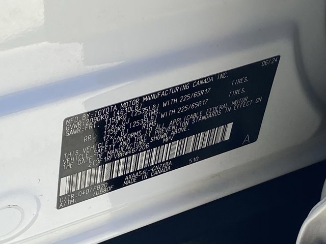 - VIN : 2T3F1RFV8RW467206