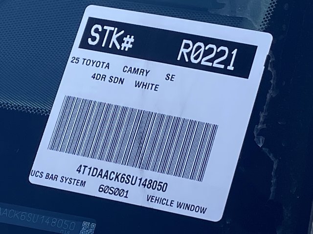 Looks and runs great. Good tires and brakes. Engine and transmission run smooth. Damage free. Immaculate inside and out. FREE CARFAX! We have great interest rate and financing for ALL credit situations.. Ice Cap 2025 Toyota Camry SE FWD eCVT 2.5L 4-Cylinder 16V DOHC 2.5L 4-Cylinder 16V DOHC, Black Cloth, ABS brakes, Active Cruise Control, Alloy wheels, Electronic Stability Control, Front dual zone A/C, Heated door mirrors, Illuminated entry, Low tire pressure warning, Remote keyless entry, Traction control.Recent Arrival! Odometer is 1067 miles below market average! 48/47 City/Highway MPGToyota Gold Certified Details:* 160 Point Inspection* Powertrain Limited Warranty: 84 Month/100,000 Mile (whichever comes first) from TCUV purchase date* Roadside Assistance* Limited Warranty: 12 Month/12,000 Mile Limited Comprehensive Warranty: 12 Month/12,000 Mile (whichever comes first) from certified purchase date* Transferable Warranty* Vehicle History* Warranty Deductible: $0* Roadside Assistance for 7 Year / 100,000 Mile. Standard New-Car Financing Rates Available. Warranty honored at over 1,400 Toyota dealers in the continental U.S. & Canada. Trade-ins accepted. Trouble-free handling of your transaction, including DMV paperworkWHY BUY at the BEACH? Our customers are our most valuable asset. If you are already a customer, welcome back. If you are new to Toyota of Huntington Beach, we would like to convince you to join the ranks of satisfied Toyota of Huntington Beach customers. Financing for all situations. Great rates available. GREAT rates for good credit. Financing for ALL credit situations. BK ok. Low score OK. (See dealer for details.) Se Hablamos Espanol. Marticular OK.