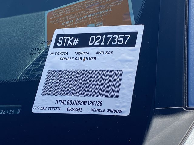 Looks and runs great. Good tires and brakes. Engine and transmission run smooth. Damage free. Immaculate inside and out. FREE CARFAX! We have great interest rate and financing for ALL credit situations.. Celestial Silver Metallic 2025 Toyota Tacoma SR5 4WD 8-Speed Automatic 2.4L 4-Cylinder 4WD, ABS brakes, Alloy wheels, Electronic Stability Control, Heated door mirrors, Illuminated entry, Low tire pressure warning, Remote keyless entry, Traction control.Odometer is 5544 miles below market average!Toyota Gold Certified Details:* Transferable Warranty* 160 Point Inspection* Roadside Assistance for 7 Year / 100,000 Mile. Standard New-Car Financing Rates Available. Warranty honored at over 1,400 Toyota dealers in the continental U.S. & Canada. Trade-ins accepted. Trouble-free handling of your transaction, including DMV paperwork* Vehicle History* Warranty Deductible: $0* Powertrain Limited Warranty: 84 Month/100,000 Mile (whichever comes first) from TCUV purchase date* Roadside Assistance* Limited Warranty: 12 Month/12,000 Mile Limited Comprehensive Warranty: 12 Month/12,000 Mile (whichever comes first) from certified purchase dateWHY BUY at the BEACH? Our customers are our most valuable asset. If you are already a customer, welcome back. If you are new to Toyota of Huntington Beach, we would like to convince you to join the ranks of satisfied Toyota of Huntington Beach customers. Financing for all situations. Great rates available. GREAT rates for good credit. Financing for ALL credit situations. BK ok. Low score OK. (See dealer for details.) Se Hablamos Espanol. Marticular OK.