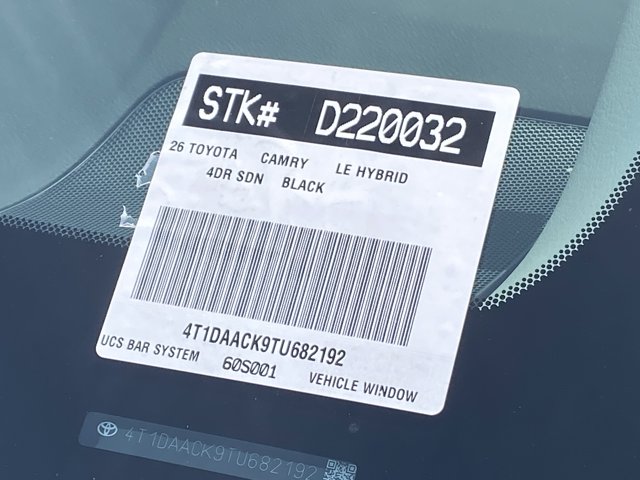 Looks and runs great. Good tires and brakes. Engine and transmission run smooth. Damage free. Immaculate inside and out. FREE CARFAX! We have great interest rate and financing for ALL credit situations.. Midnight Black Metallic 2026 Toyota Camry LE FWD eCVT 2.5L 4-Cylinder 16V DOHC Boulder Cloth, ABS brakes, Active Cruise Control, Alloy wheels, Electronic Stability Control, Front dual zone A/C, Heated door mirrors, Illuminated entry, Low tire pressure warning, Remote keyless entry, Traction control.53/50 City/Highway MPGToyota Gold Certified Details:* Vehicle History* Roadside Assistance* Powertrain Limited Warranty: 84 Month/100,000 Mile (whichever comes first) from TCUV purchase date* 160 Point Inspection* Transferable Warranty* Roadside Assistance for 7 Year / 100,000 Mile. Standard New-Car Financing Rates Available. Warranty honored at over 1,400 Toyota dealers in the continental U.S. & Canada. Trade-ins accepted. Trouble-free handling of your transaction, including DMV paperwork* Limited Warranty: 12 Month/12,000 Mile Limited Comprehensive Warranty: 12 Month/12,000 Mile (whichever comes first) from certified purchase date* Warranty Deductible: $0WHY BUY at the BEACH? Our customers are our most valuable asset. If you are already a customer, welcome back. If you are new to Toyota of Huntington Beach, we would like to convince you to join the ranks of satisfied Toyota of Huntington Beach customers. Financing for all situations. Great rates available. GREAT rates for good credit. Financing for ALL credit situations. BK ok. Low score OK. (See dealer for details.) Se Hablamos Espanol. Marticular OK.